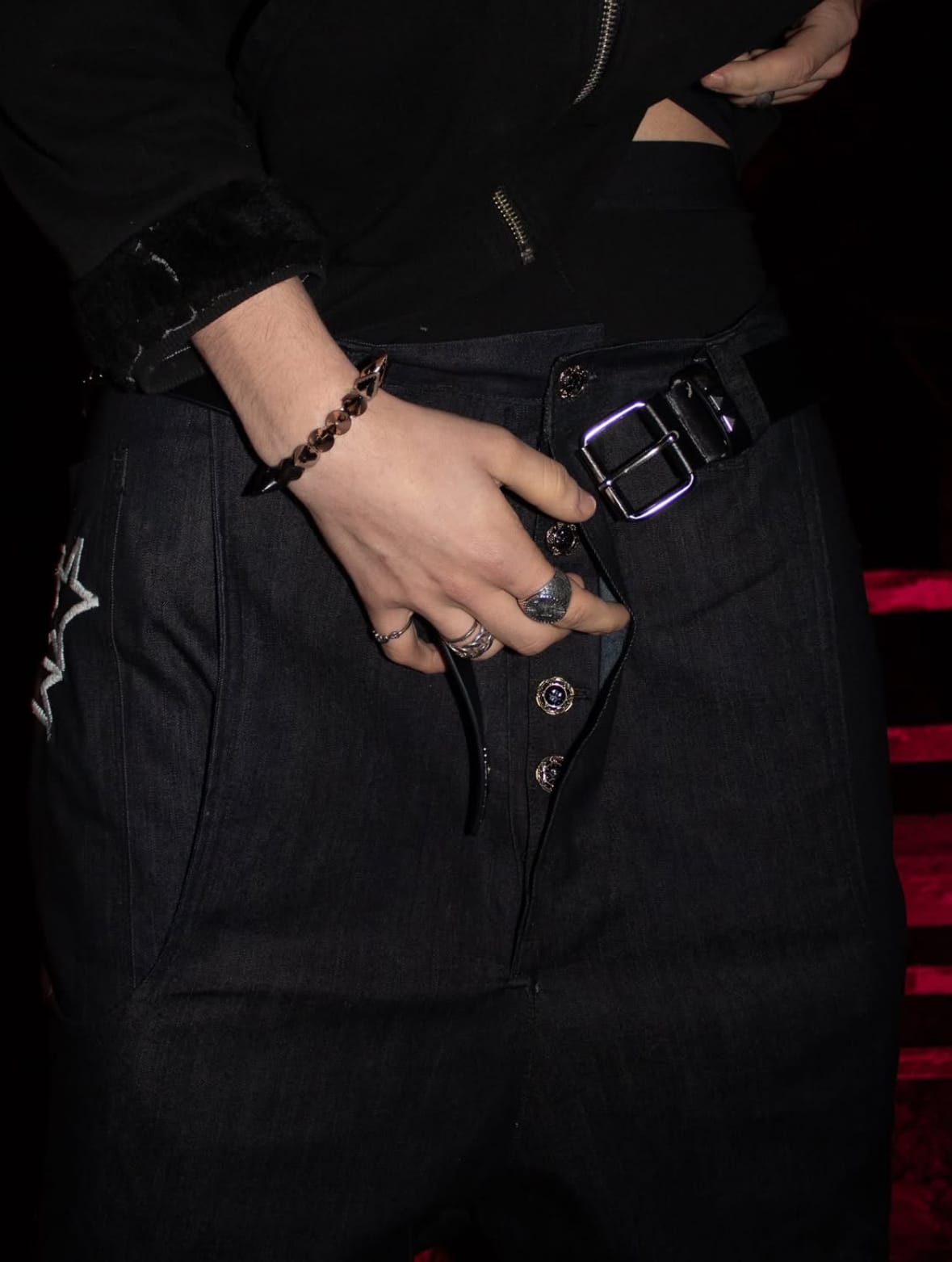 Mi favorito es este vaquero stretch, low rised y ultra drop crotch confeccionado junto con @fairydeathbri que me recuerdan muchísimo a la estética de 2013 tan popularizada por Justin Bieber. Los bolsillos enormes son una locura y de los botones nada que decir.